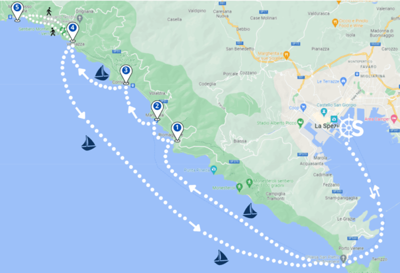 In questo giorno di navigazione a La Spezia, ti portiamo alle meravigliose Cinque Terre! Ti consigliamo di partire presto dal porto della città per un’esperienza a 360 gradi. Non dimenticare l’essenziale, soprattutto la crema solare, e imbarcati!