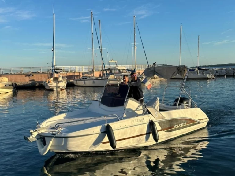 Salve, | Vi propongo in affitto questa barca molto ben tenuta e confortevole, ideale per gite in famiglia o tra amici! Propulso da un motore da 150 cavalli e con una capacità massima di 7 persone, venite a passare una giornata in mare! | Vi metto a disposizione un paddle. | Le uscite sono dalle 9:30 alle 17:30, è possibile accordarsi sull'orario. | I prezzi nell'annuncio sono senza skipper e senza carburante. | La barca è disponibile al Port Gallice. | La barca è anche dotata di un comodo divano di poppa, di un telo parasole e di un ampio prendisole a prua, oltre a una cabina ideale per godersi le vostre uscite! | Barca perfetta per passeggiate. | Vi consiglio le imperdibili isole di Lerins. | Potrete anche godere di serate fuochi d'artificio, con formula all inclusive in accompagnamento a partire dalle 18:30. Non esitate a contattarmi. | Per quanto riguarda gli spostamenti, il raggio d'azione della barca è autorizzato fino alla spiaggia di Garoupe sul lato est e dall'altro lato fino all'isola d'or. Un tracker è integrato nella barca garantendo così la vostra sicurezza. In caso di superamento di queste zone potrebbe essere richiesto un supplemento. | Per eventuali domande e per pianificare il vostro soggiorno a bordo non esitate a contattarmi