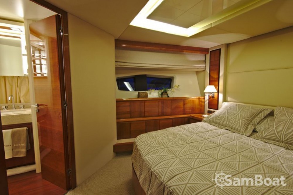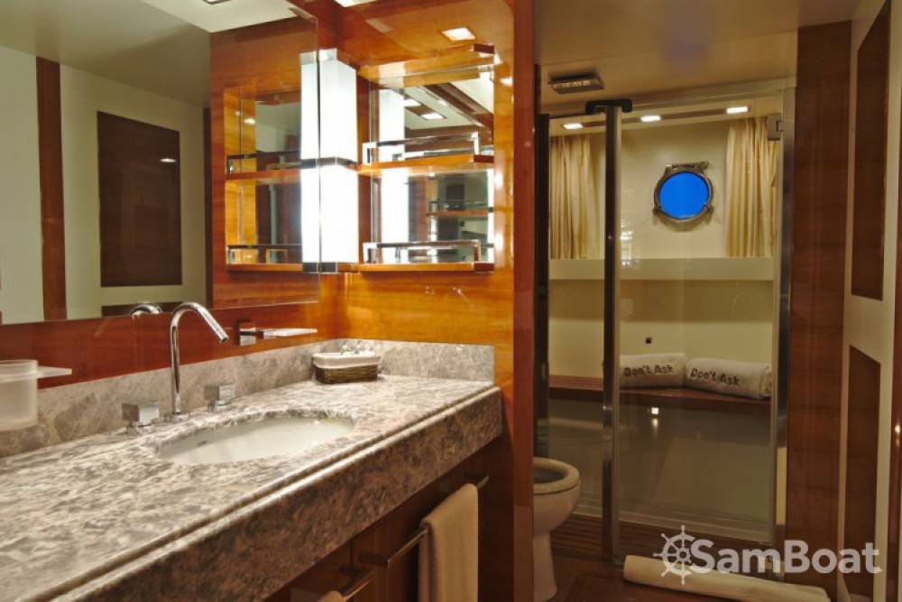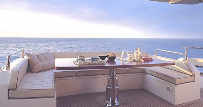 Ce magnifique bateau est disponible avec trois membres d'équipage Vous bénéficiez de 3 cabines dont deux cabines doubles et une cabine avec deux lits simples. Vous disposez dans le bateau de tout le matériel de plongée, d'équipements pour les sports nautiques (wakeboard, ski, bouée etc ...) Vous retrouverez sur les photos le confort de ce bateau de luxe. Le tarif est de 28000€ HT par semaine. N'hésitez pas à nous envoyer une demande de devis, nous étudierons votre demande