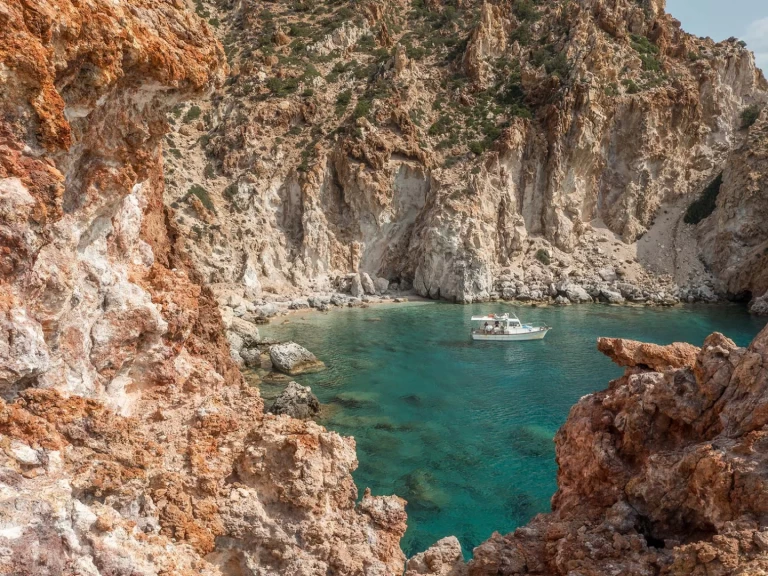 Il tour inizia da Pollonia verso Polyaigos. La più grande isola disabitata del Mediterraneo con acque blu, turchesi e acquamarine. Mirsini è la nostra prima tappa per fare il bagno. Puoi rilassarti ammirando il panorama o nuotare nelle acque turchesi e scoprire un bellissimo percorso subacqueo. Poi continuiamo verso sud verso la famosa spiaggia chiamata Acque Blu che sicuramente ti affascinerà. Ti serviremo deliziose torte tradizionali accompagnate da bibite analcoliche, birre e acqua illimitate. Qui puoi pescare con la canna. Poi inizieremo il nostro ritorno a Pollonia. Una scelta perfetta per coppie, famiglie e gruppi