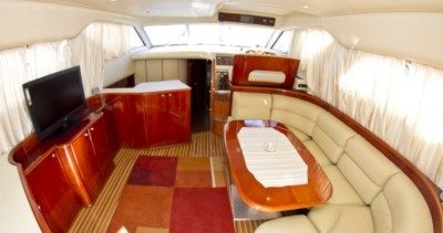 Es ist unter anderem mit folgender Ausrüstung ausgestattet: Autopilot, Außenbordmotor, TV, USB-Steckdose, WLAN und Internet, Deckdusche, Klimaanlage, Außenkühlschrank.