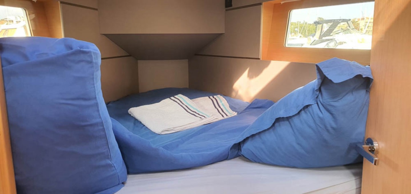 C'est un voilier de 10.5 mètres assisté d'un moteur de 29cv. Le bateau est de Mars 2018. Il peut accueillir jusqu'à 8 personnes au total, optimal à 6 mais en location sans capitaine uniquement pour 4 passagers maximum. Je précise ici qu'il est vain de faire une demande de location sans capitaine a plus de 4 passagers.