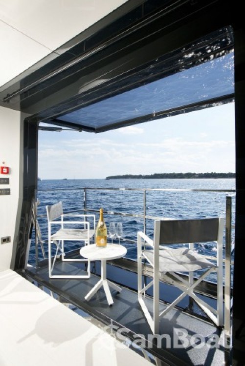 Ce magnifique bateau est disponible avec huit membres d'équipage Vous bénéficiez de 5 cabines, trois doubles, et deux twins, 1 convertible Vous disposez dans le bateau de tout le matériel de plongée, d'équipements pour les sports nautiques (wakeboard, ski, bouée etc ...) Vous retrouverez sur les photos le confort de ce bateau de luxe. Le tarif est de 110000€ HT par semaine. N'hésitez pas à nous envoyer une demande de devis, nous étudierons votre demande